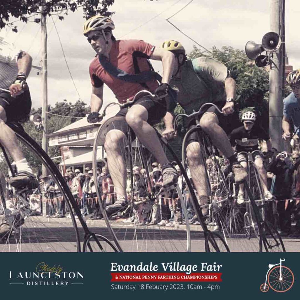 Started in 1983, the Evandale Penny Farthing races attract enthusiasts from across Australia and around the world. A village fair and period themed festival in Pioneer Park accompanies the Penny Farthings races.