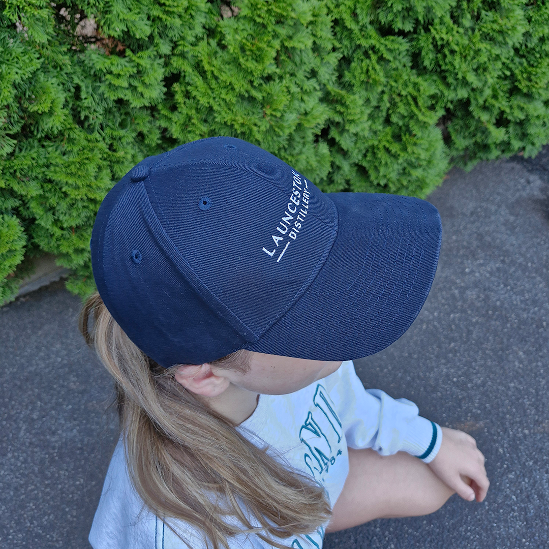 A stylish cap in classic Ansett navy blue, proudly embroidered with the Launceston Distillery name at the front.