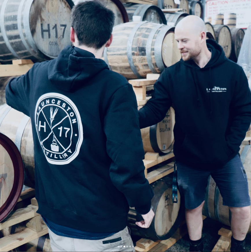 A pull over hoodie featuring the Made by Launceston Distillery logo on the front and …